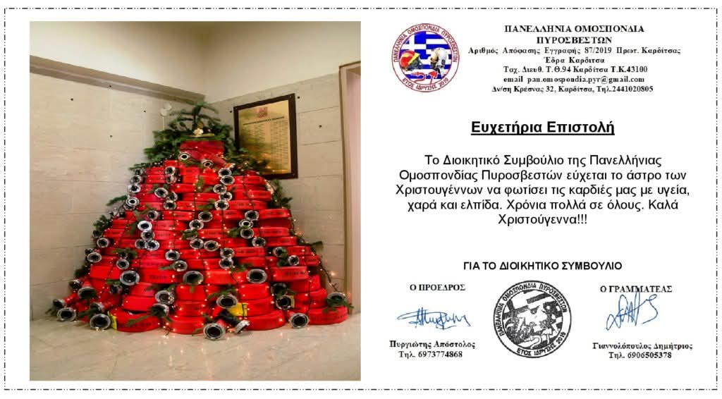 ” Το Διοικητικό Συμβούλιο της Πανελλήνιας Ομοσπονδίας Πυροσβεστών εύχεται το άστρο των Χριστουγέννων να φωτίσει τις καρδίες μας με υγεία, χαρά και ελπίδα. “ 24 Δεκεμβρίου 202524 Δεκεμβρίου 2025 pop_Jimgiann